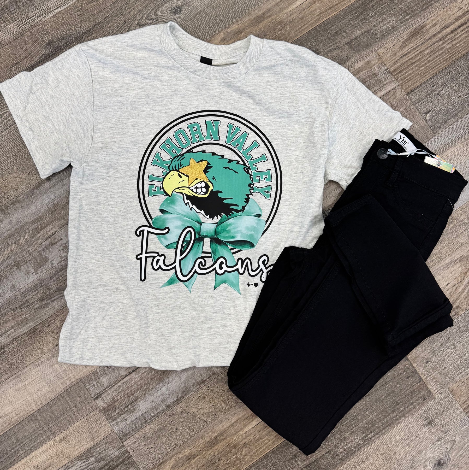 Show your Falcon Spirit all day long in this unisex tee! Ash Grey tee with falcons mascot and bow, a look that'll have you soaring above the competition. 50% Cotton 50% Polyester. Go, Falcons! 🦅 Fits true to size.Â